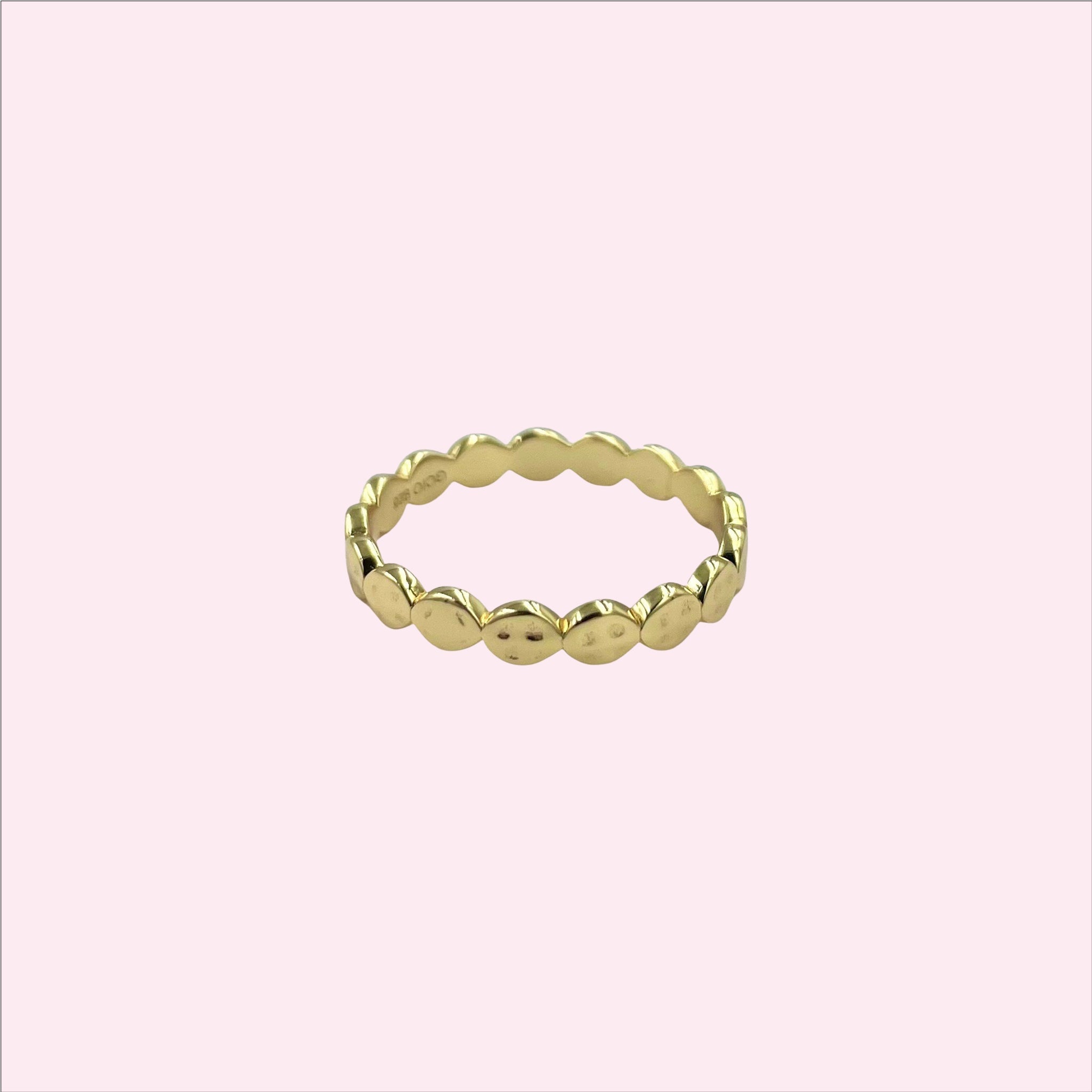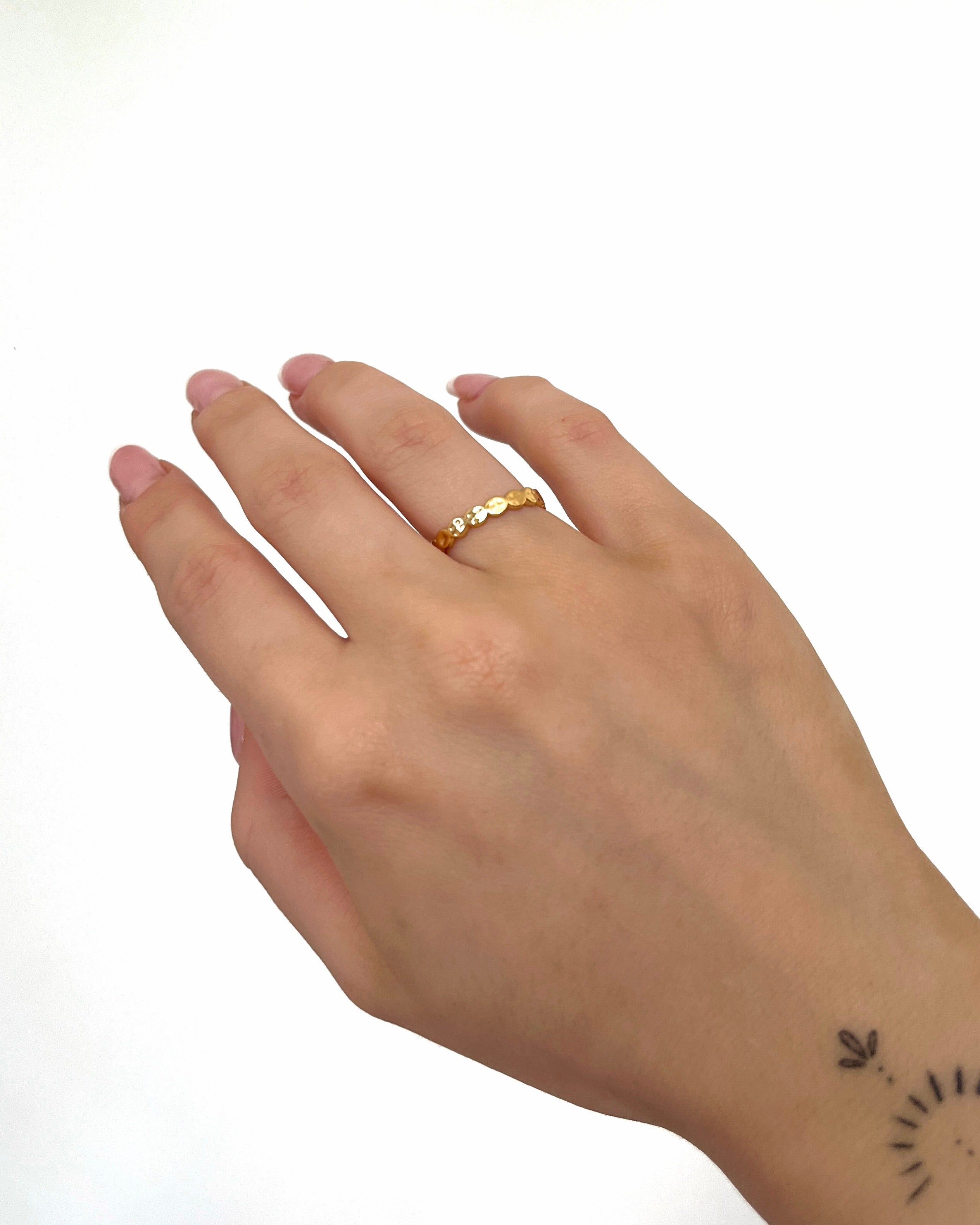 L'anneau aminda fin est composé de petits cercles, donnant à l'anneau une structure ondulée douce autour du bord. Les cercles ont de petites bosses à la surface, qui, en combinaison avec les cercles sucrés, contribuent à une expression rustique et excentrique.