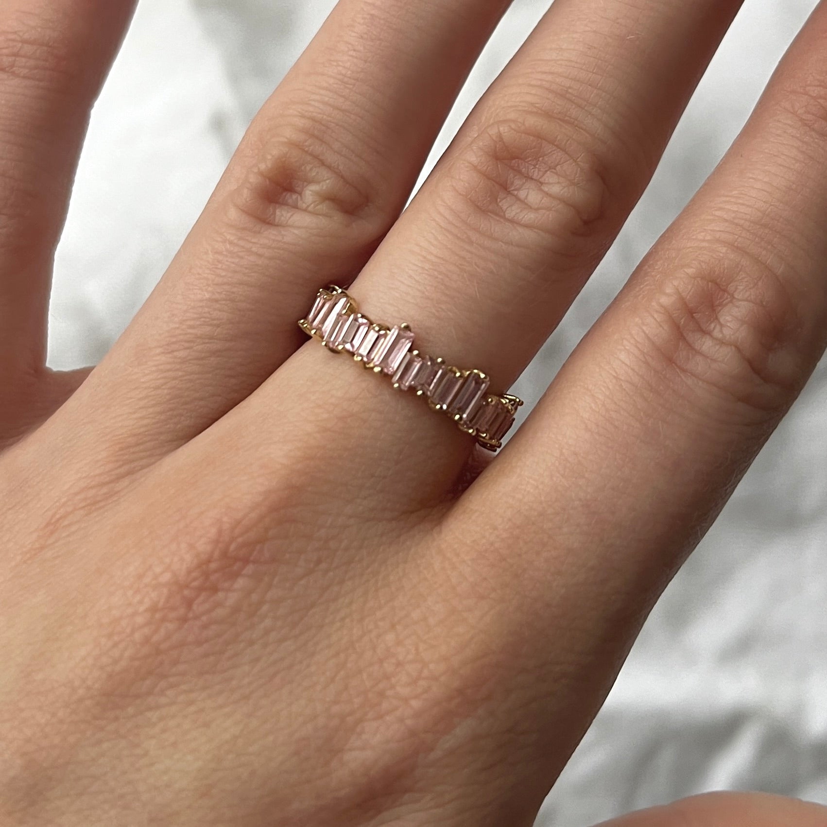 Eterna Ring capture l'essence de l'élégance intemporelle avec ses zircons roses bruts, qui dans une éternité étincelante dansant autour du doigt. Transporter Etherna comme une déclaration solo ou un mélange et assortir avec d'autres anneaux pour un look sophistiqué. L'anneau Eterna se trouve également avec des pierres violettes.
