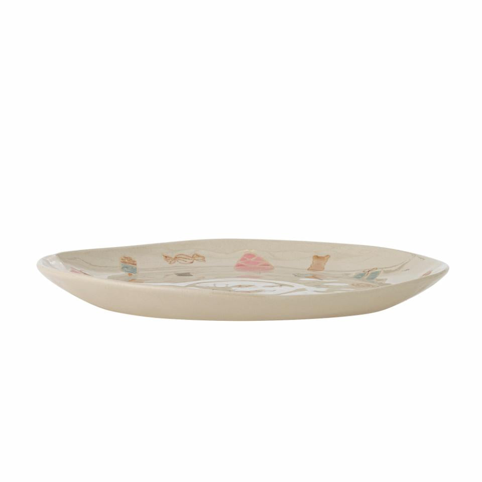 L'assiette Sweets du Mini Bloomingville est le moyen idéal pour ajouter une petite fête supplémentaire à vos rassemblements. Ce beau plat de grès est orné d'illustrations colorées et festives de cadeaux, de glaces et de bonbons, ce qui le rend idéal pour servir les bonbons du vendredi ou d'autres délices.