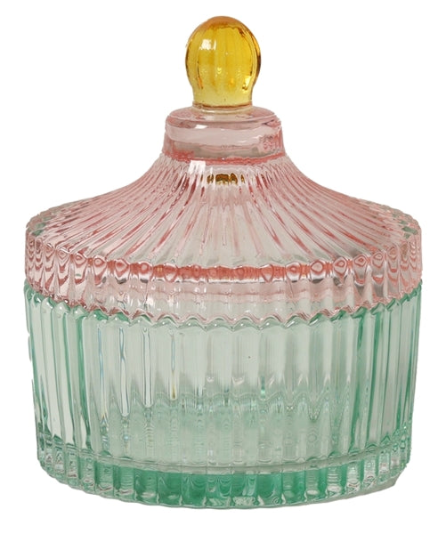 Bonbonniere avec rayures, menthe légère / rose, 12x Ø10 cm