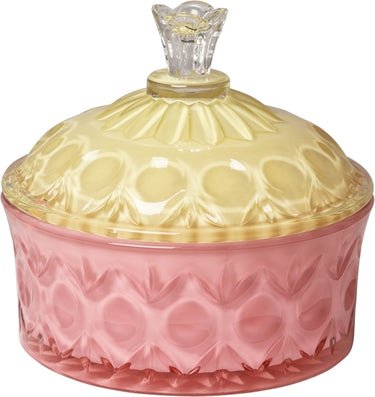 Giv dit hjem et lyst og legende pift med denne smukke bonbonniere fra Au Maison. Den pinke og gule farvekombination bringer glæde og liv til ethvert rum, og den fine glas krukke med låg er ideel til opbevaring af små skatte, slik eller som en dekorativ genstand.