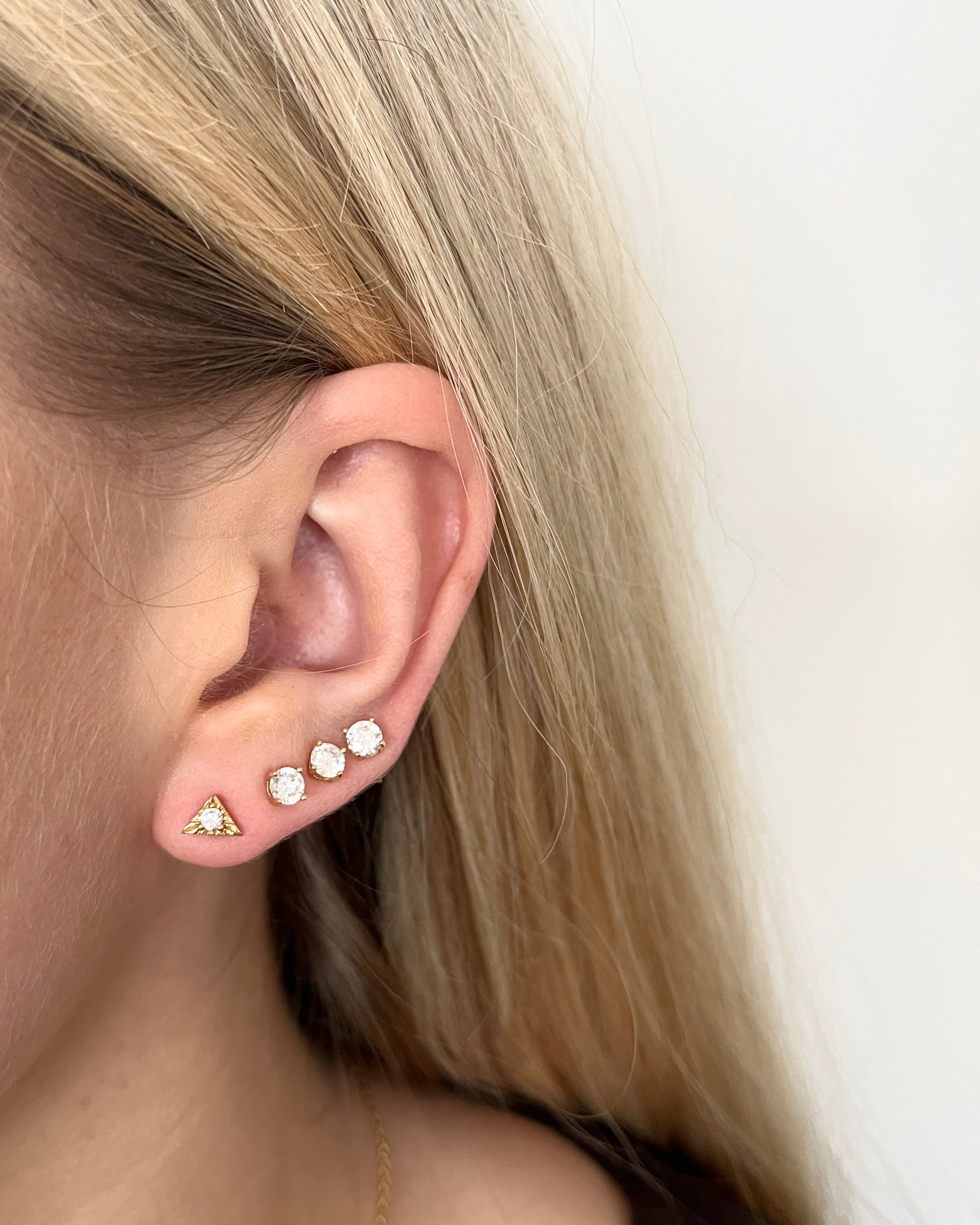 Les belles boucles d'oreilles Evidenta ont la forme de triangles. En combinaison avec la couleur dorée de la boucle d'oreille, le moule peut presque rappeler une pyramide. Au milieu du triangle se trouve une belle pierre claire qui fait briller la boucle d'oreille Evidenta.