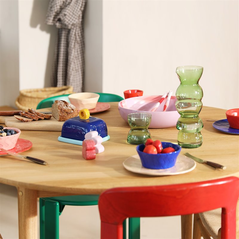 Avec cette charmante peau de beurre de couleur bleue, vous obtenez non seulement une solution de stockage pratique pour votre beurre, mais aussi une caractéristique artistique pour votre table. Les couleurs contrastées et les formes abstraites donnent vie à n'importe quel repas.