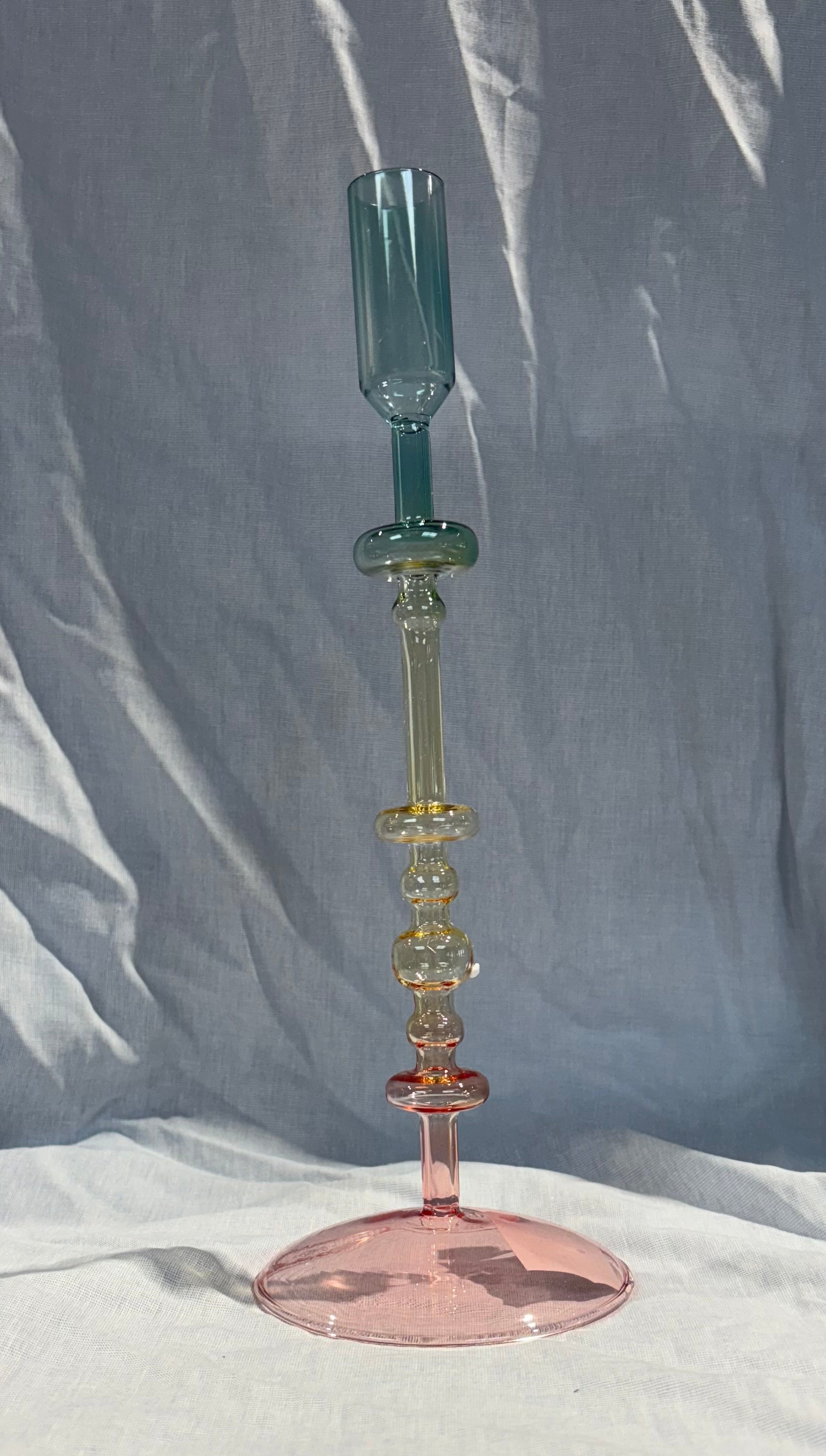 Candonnes en verre, rose / jaune / turquoise, 29xø10 cm