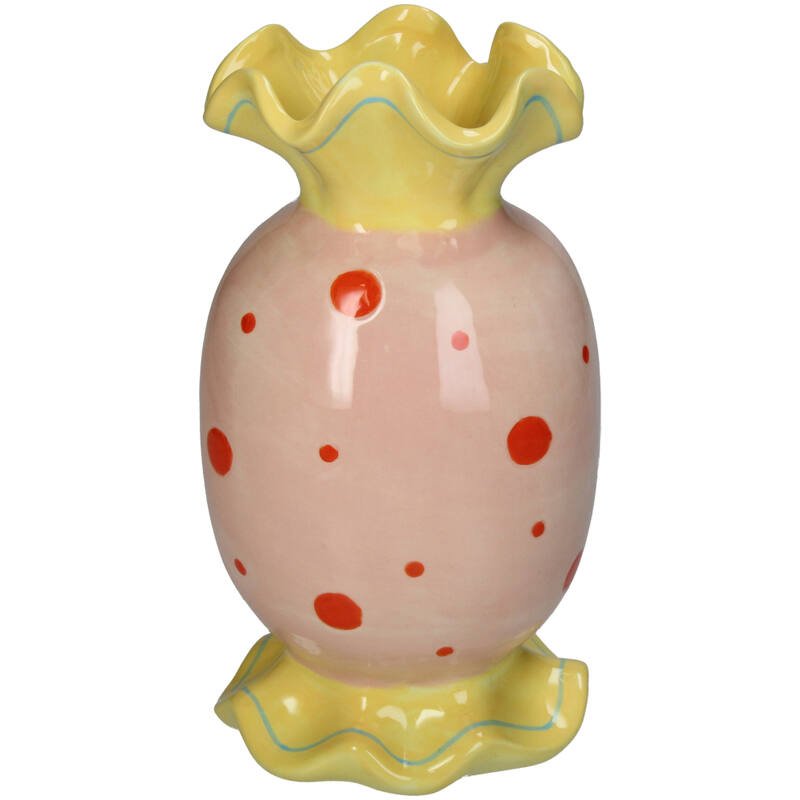 Candy Vase - Jaune et rose avec des points rouges