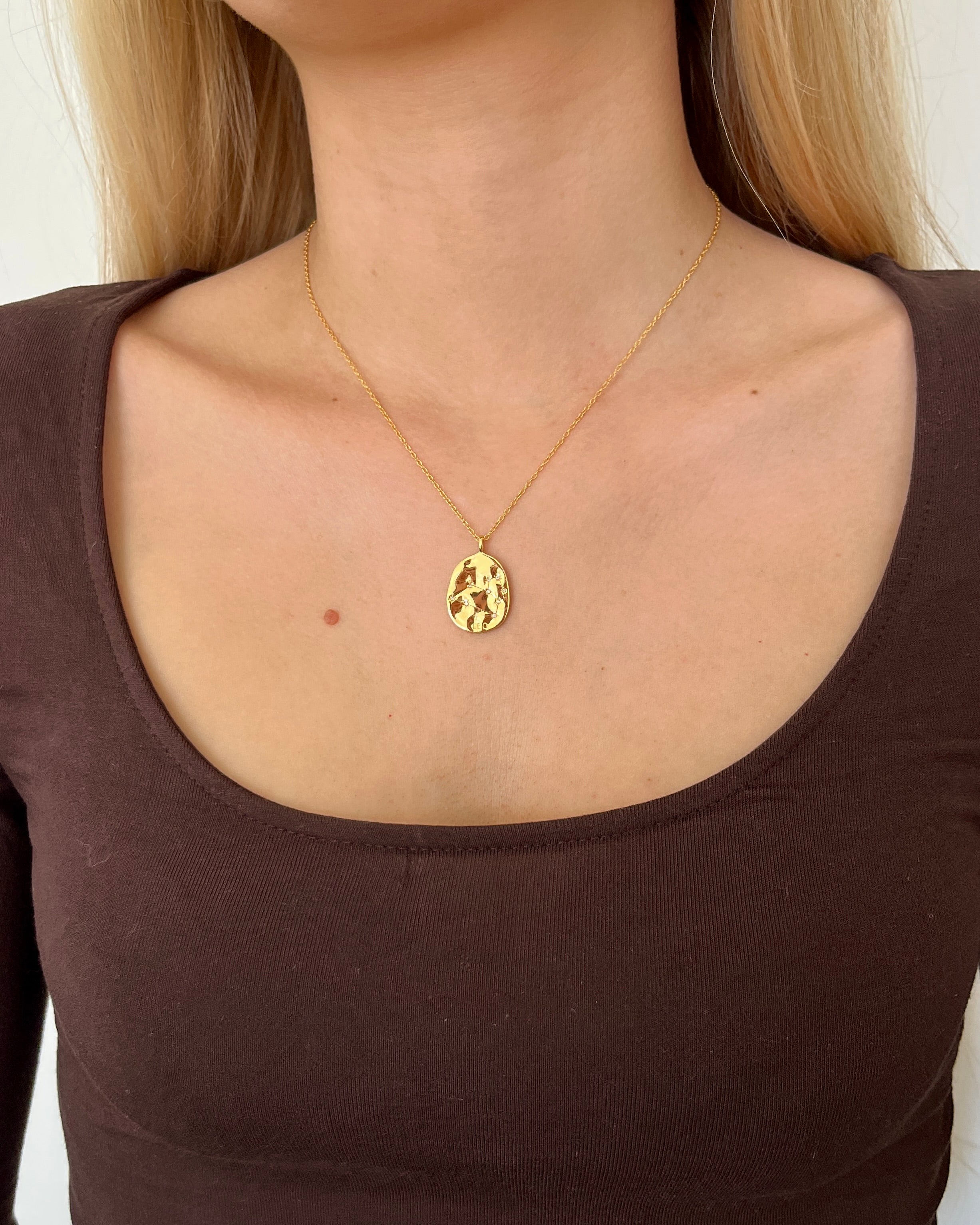 Le magnifique pendentif a des motifs des deux côtés. D'une part, la constellation est gravée, tandis que le sujet de l'autre représente le signe lui-même.