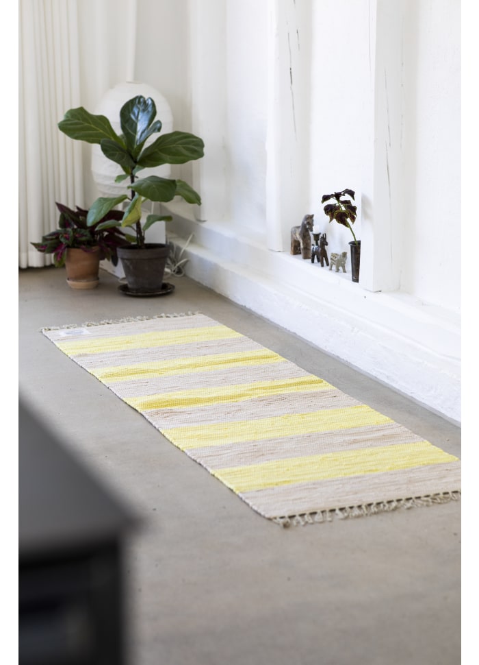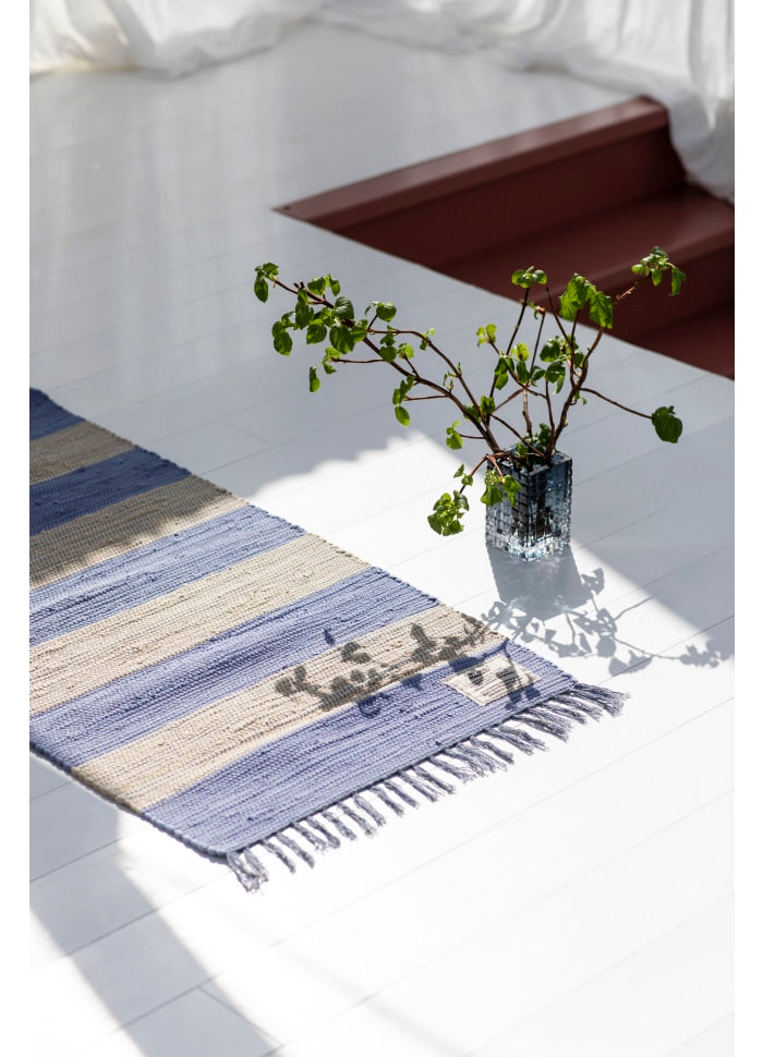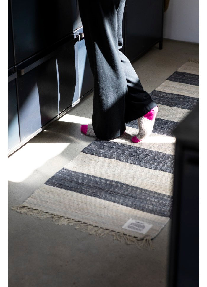 - Matériel: Tissé à la main de tissus de coton recyclés, ce qui rend chaque tapis unique.