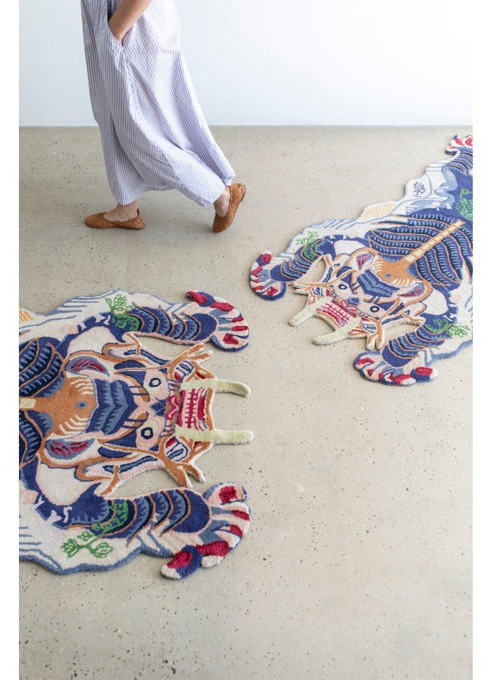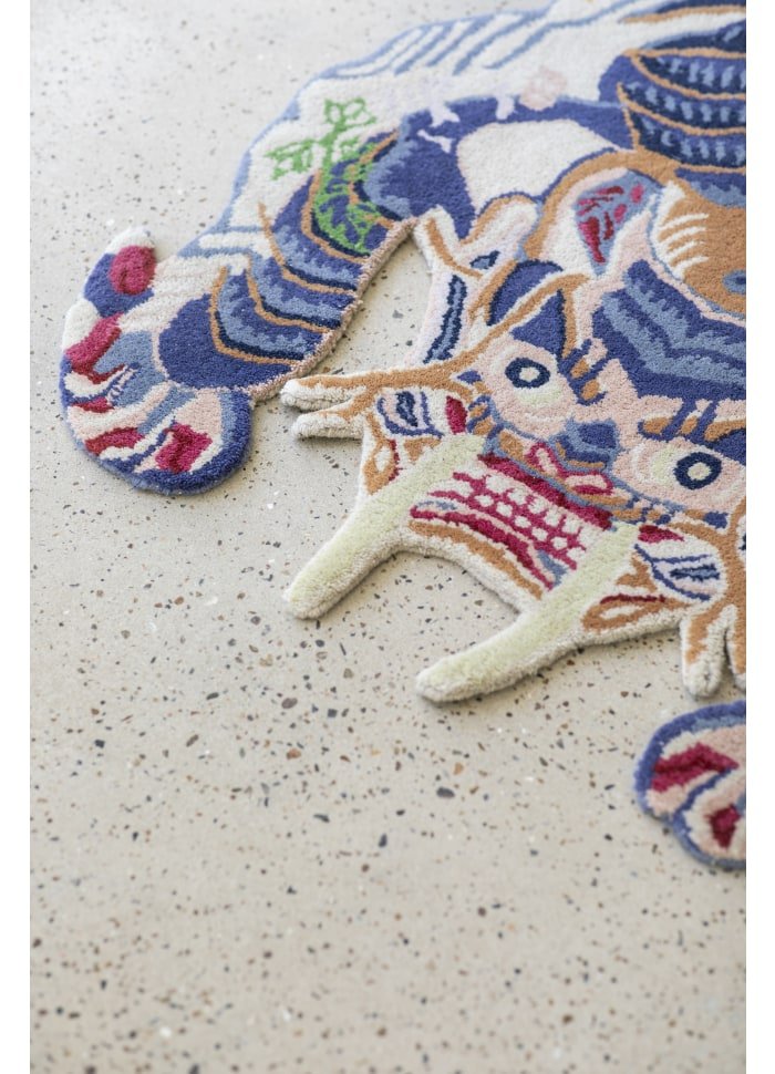 Le tapis dragon fonctionne à la fois comme tapis de sol pratique et comme élément décoratif sur le mur. Cela donne de la flexibilité dans la décoration intérieure et la possibilité de créer une expression personnelle dans la maison. Les nombreux détails du tapis invitent à l'exploration et peuvent être particulièrement intéressants pour les enfants qui s'intéressent aux dragons.