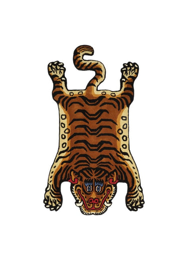 Le tapis tigre agit comme un élément créateur d'ambiance à l'intérieur, qui, avec son aspect exotique, ajoute une atmosphère unique à la pièce. La qualité luxueuse de la laine garantit à la fois un attrait visuel et une durabilité pratique au quotidien.
