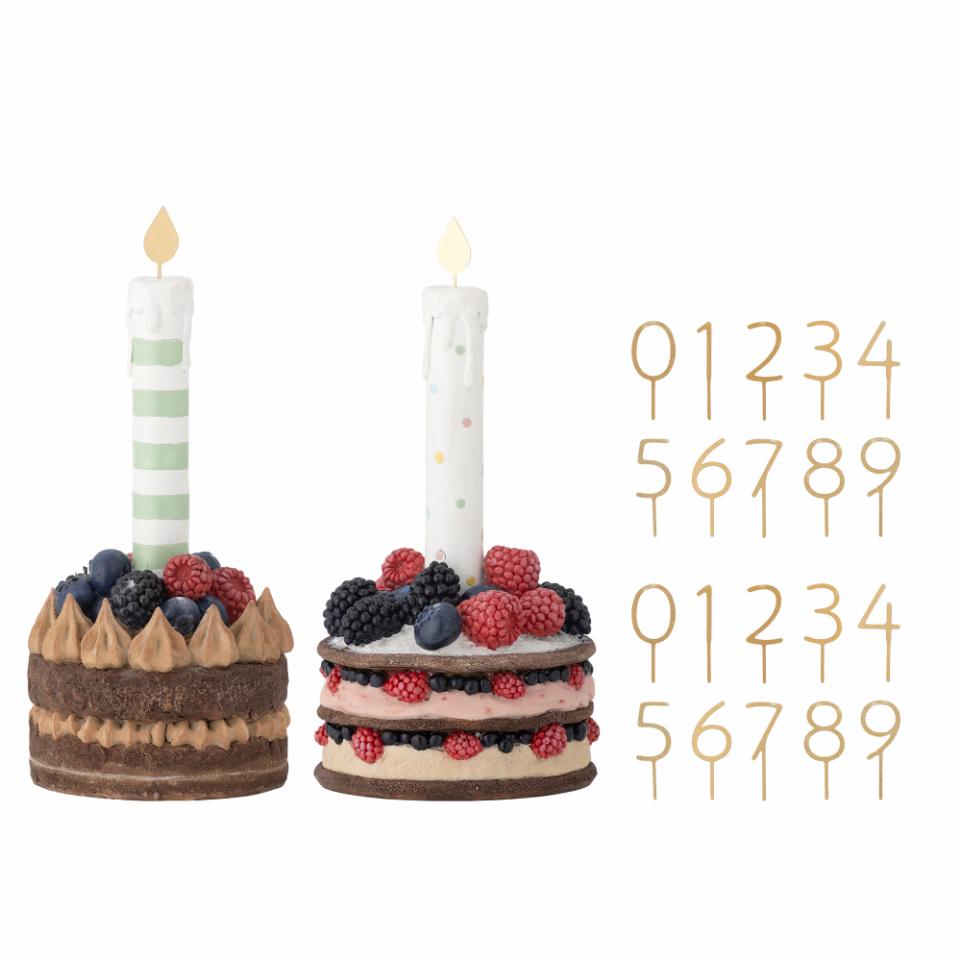 Rendez la célébration d'anniversaire extra spéciale avec la charmante décoration d'anniversaire de gâteau de couche de Bloomingville. Cet ensemble décoratif comprend deux figures de gâteaux fins qui ressemblent à de délicieux gâteaux en couches garnis de baies et de lumières, qui ajoutent une atmosphère colorée et festive à tout anniversaire.