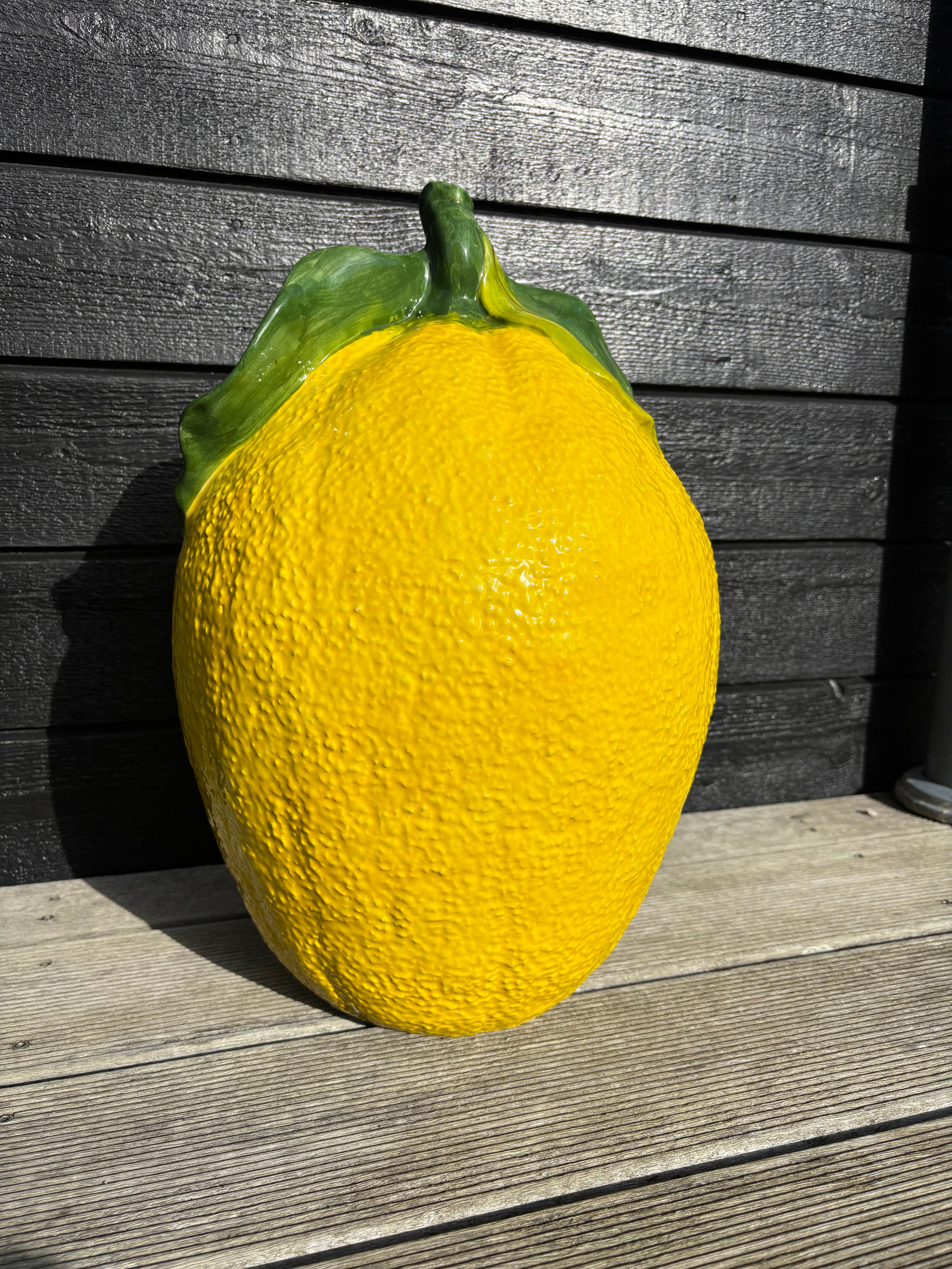 Cette figurine de citron est fabriquée en véritable céramique italienne et peinte à la main par des artistes qualifiés. Avec ses 46 cm de hauteur, le citron jaune attire tous les regards dans votre décoration, qu'il soit placé sur le rebord de la fenêtre, au sol ou sur une table d'appoint.