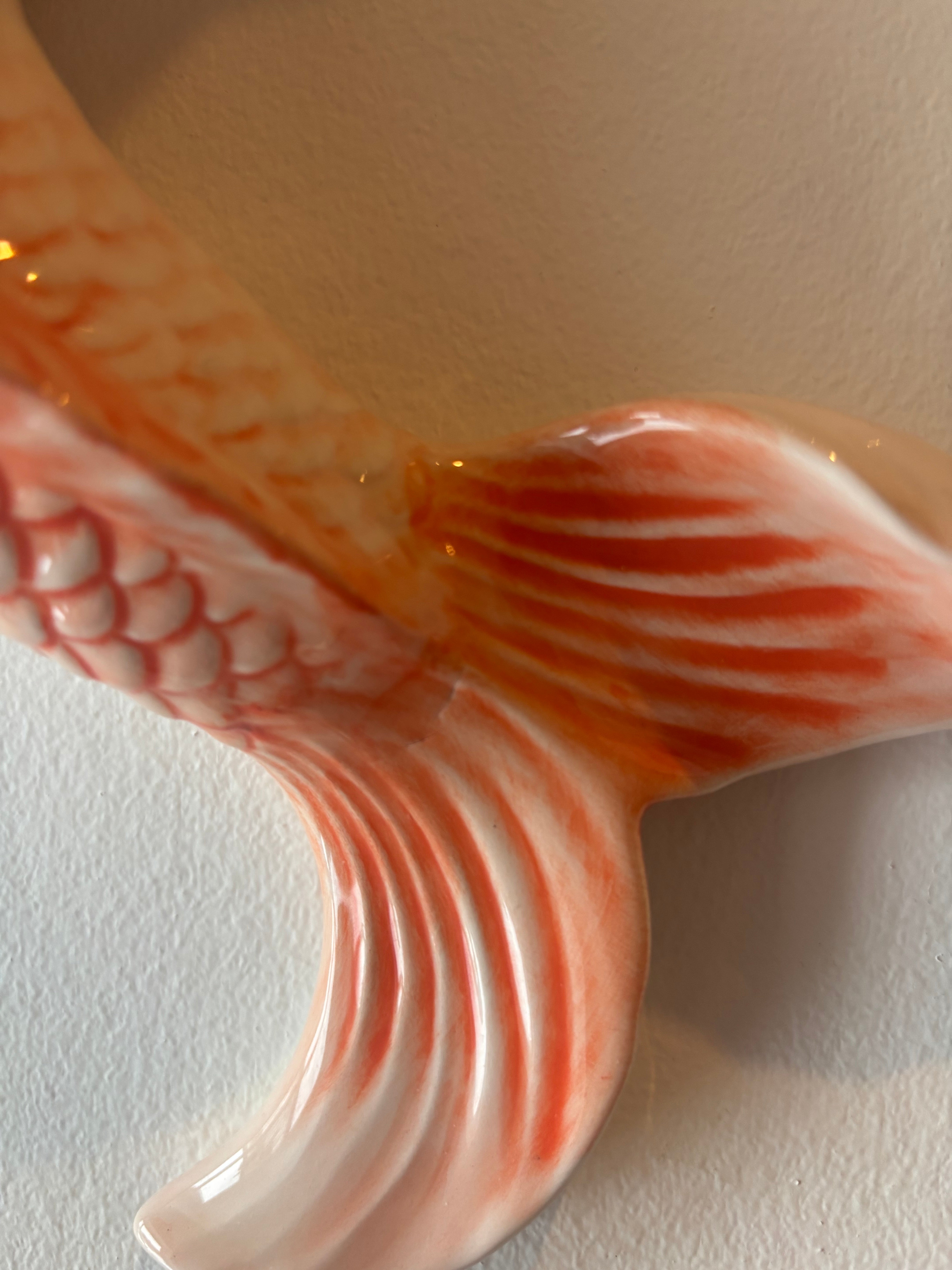 Cette grande carpe est un élément de décoration artistique pour votre maison. Peinte à la main en Italie avec des teintes orange et rouge vif, cette figurine en porcelaine donne une expression authentique et unique. Avec ses 39 cm de longueur, il peut être accroché au mur ou posé comme élément de décoration sur une table ou une étagère.