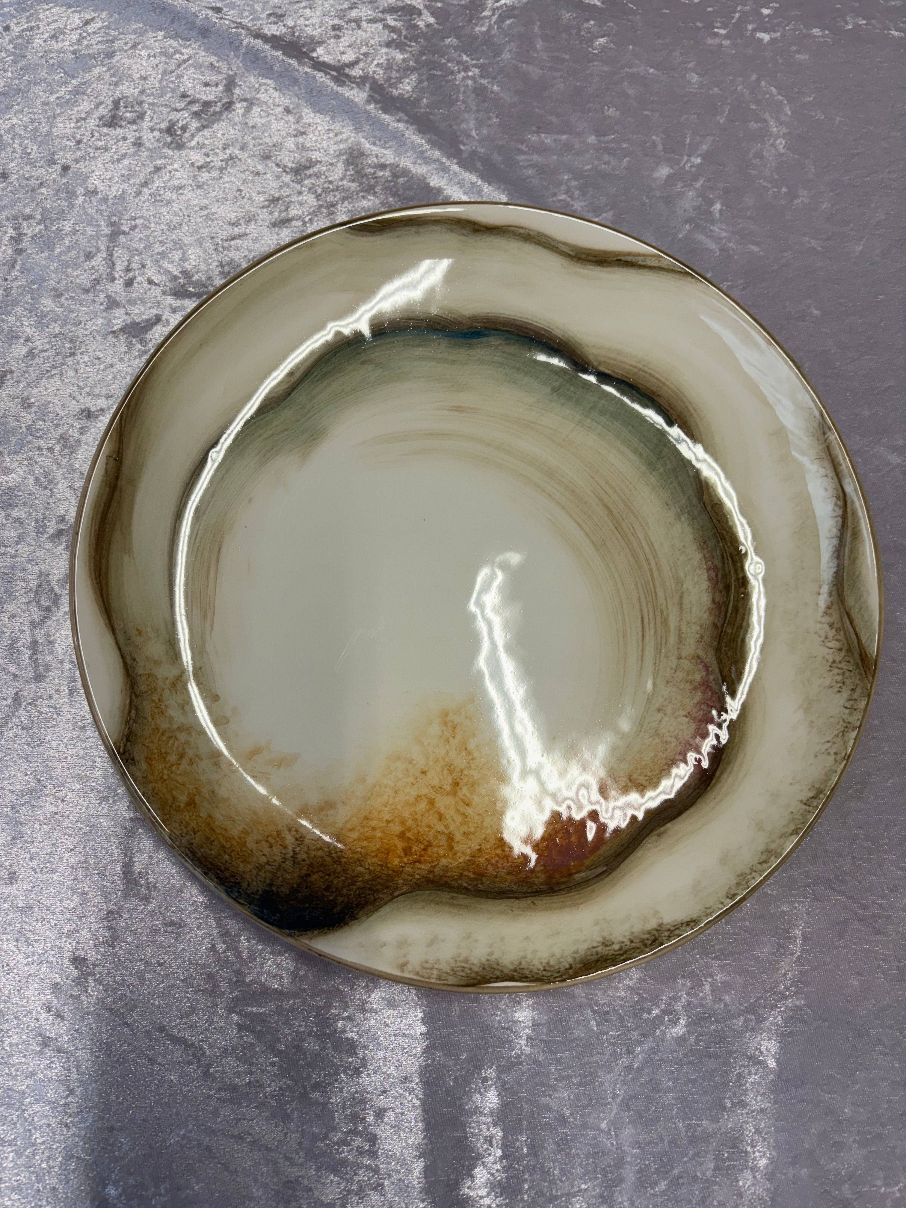 Giv dit bord et personligt præg med Giada østers tallerken fra Caja Company. Denne håndmalede tallerken, med en diameter på 26 cm, er ikke kun smuk, men også funktionel. Den er perfekt til at servere dine yndlingsretter eller som et dekorativt fad.