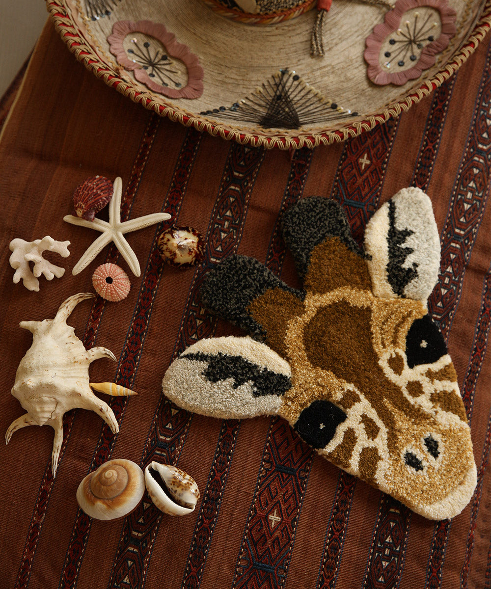 Giv dit hjem et legende og farverigt præg med dette girafhoved tæppe, der vil bringe smil frem hver dag.