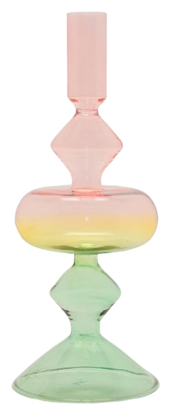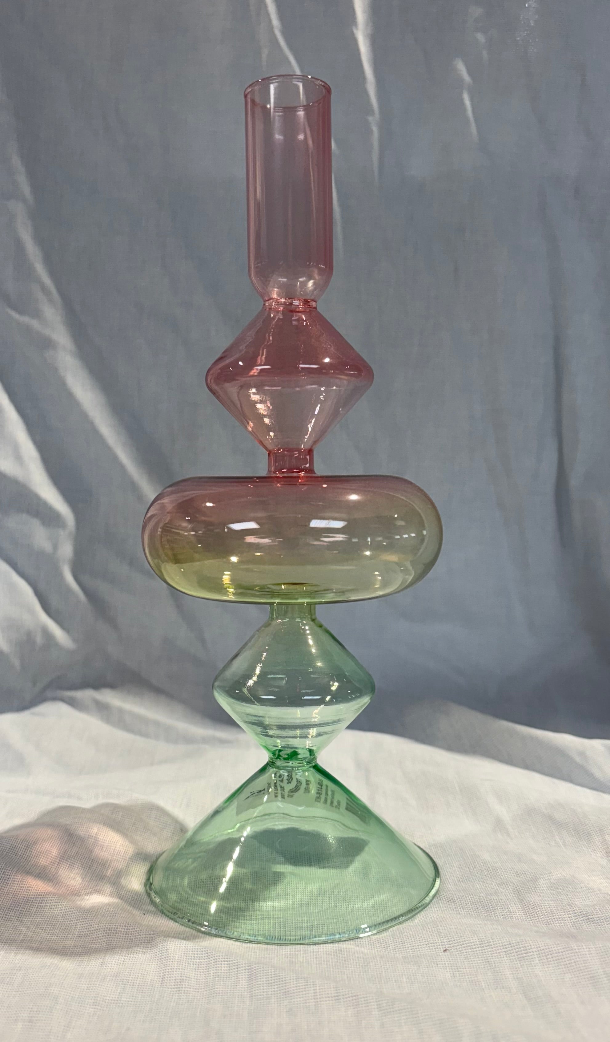 Gloupe de verre, vert / jaune / rose, 23xø9 cm
