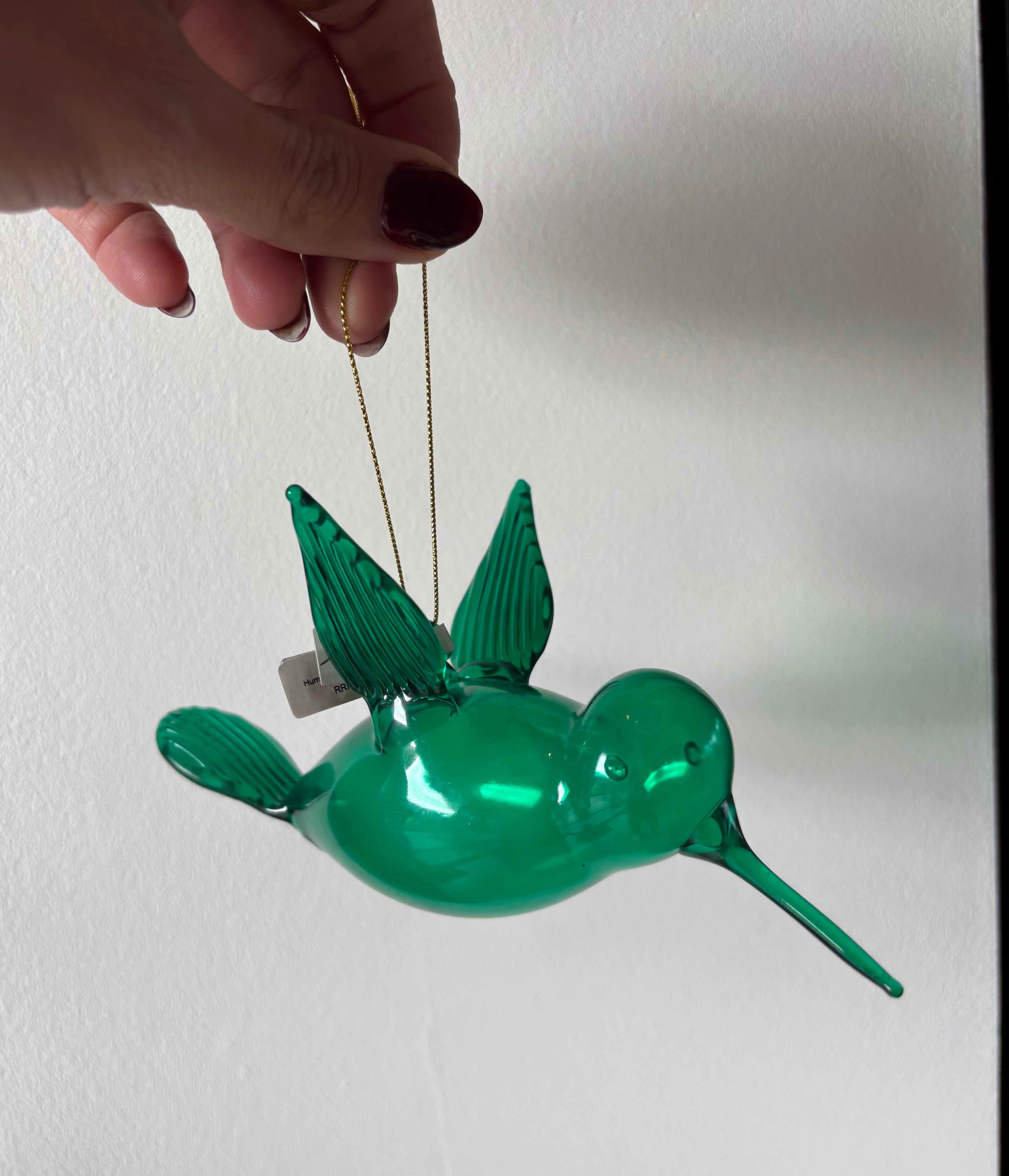 Den grønne glas kolibri er et unikt ornament, der tilføjer en legende og farverig detalje til dit hjem. Uanset om den hænges på juletræet eller pynter på en gren året rundt, vil denne kolibri skabe glæde og charme i enhver indretning.