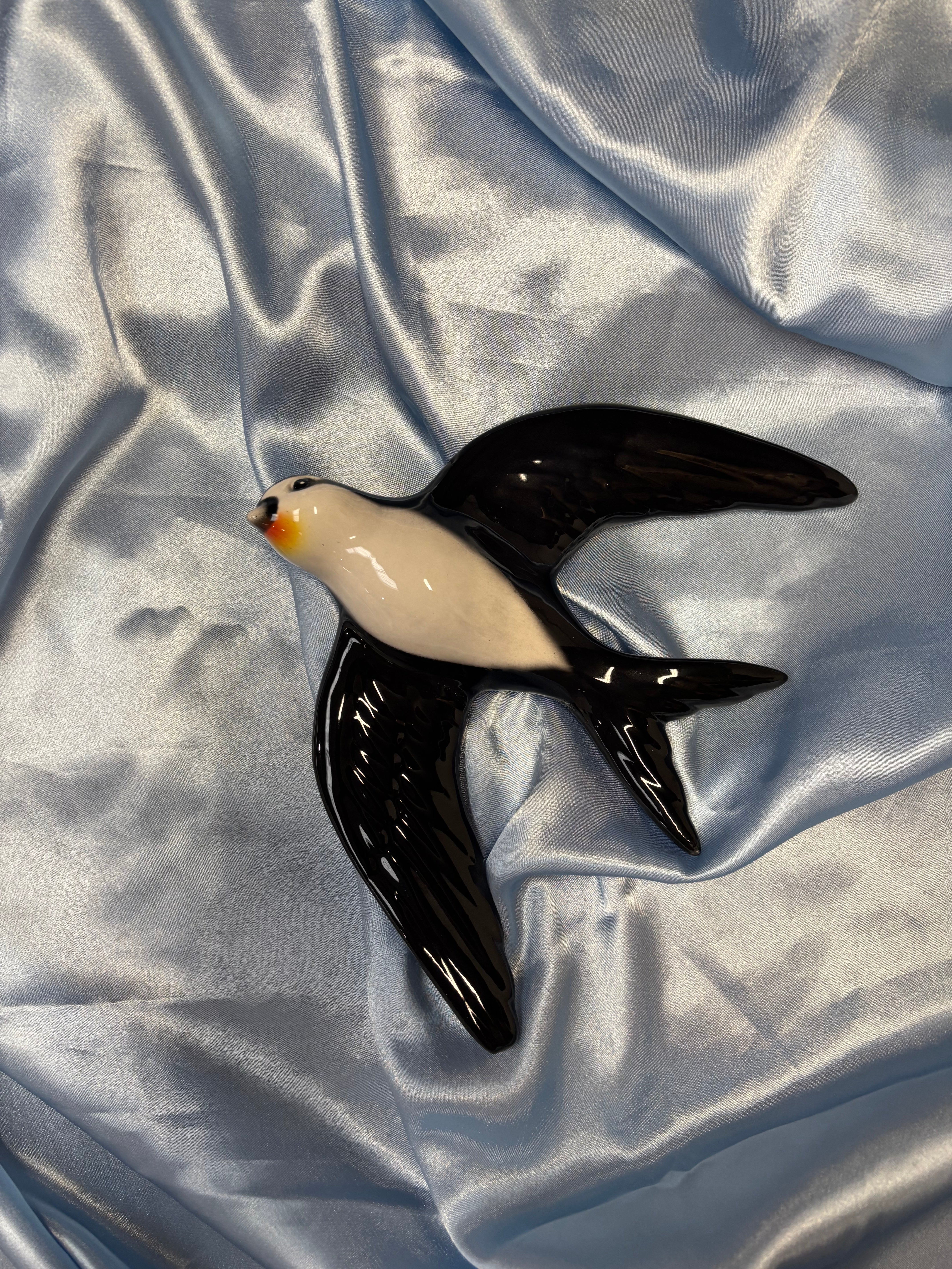 Figurine en porcelaine italienne peinte à la main d'une élégante hirondelle