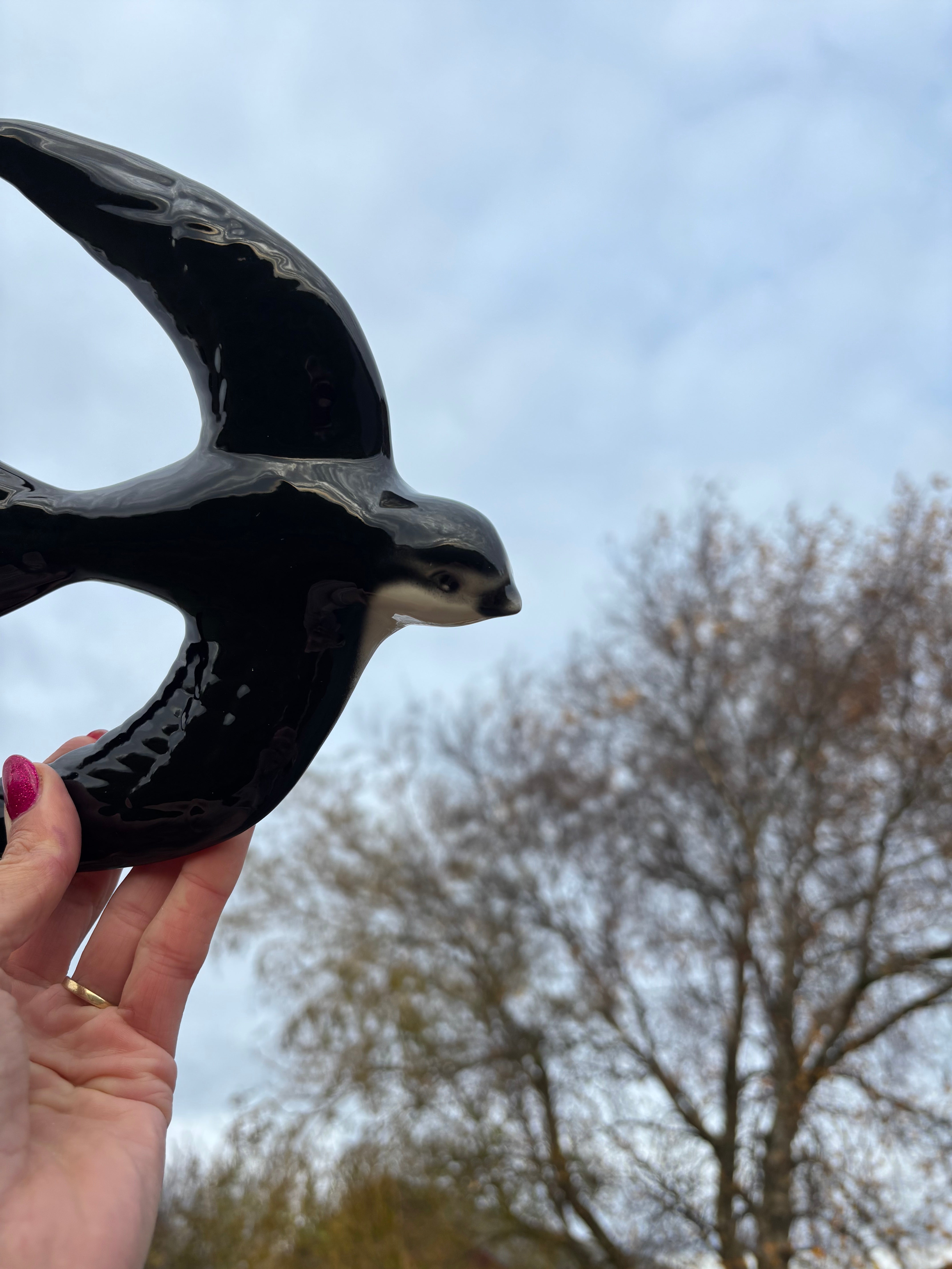 Figurine en porcelaine italienne peinte à la main d'une élégante hirondelle