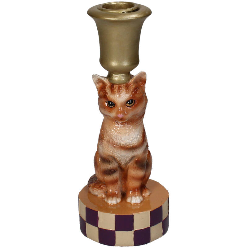 Dekorativ katte lysestage i farverigt design