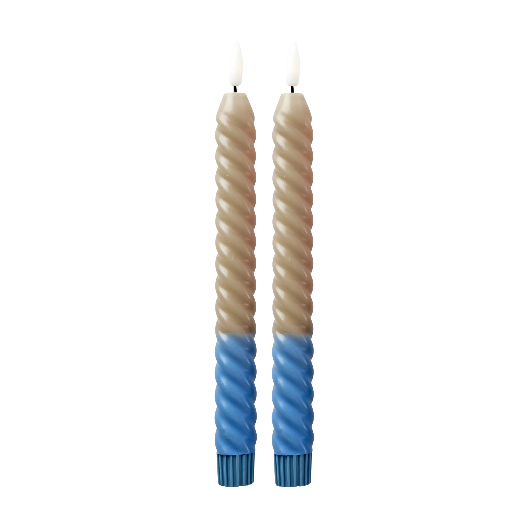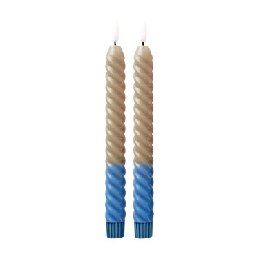 Disse fine snoede LED lys i nuancerne mørk sand og dueblå tilføjer et unikt præg til dit hjem. Med deres livagtige, flimrende flamme skaber de en hyggelig atmosfære, der inviterer til afslapning og gode stunder.
