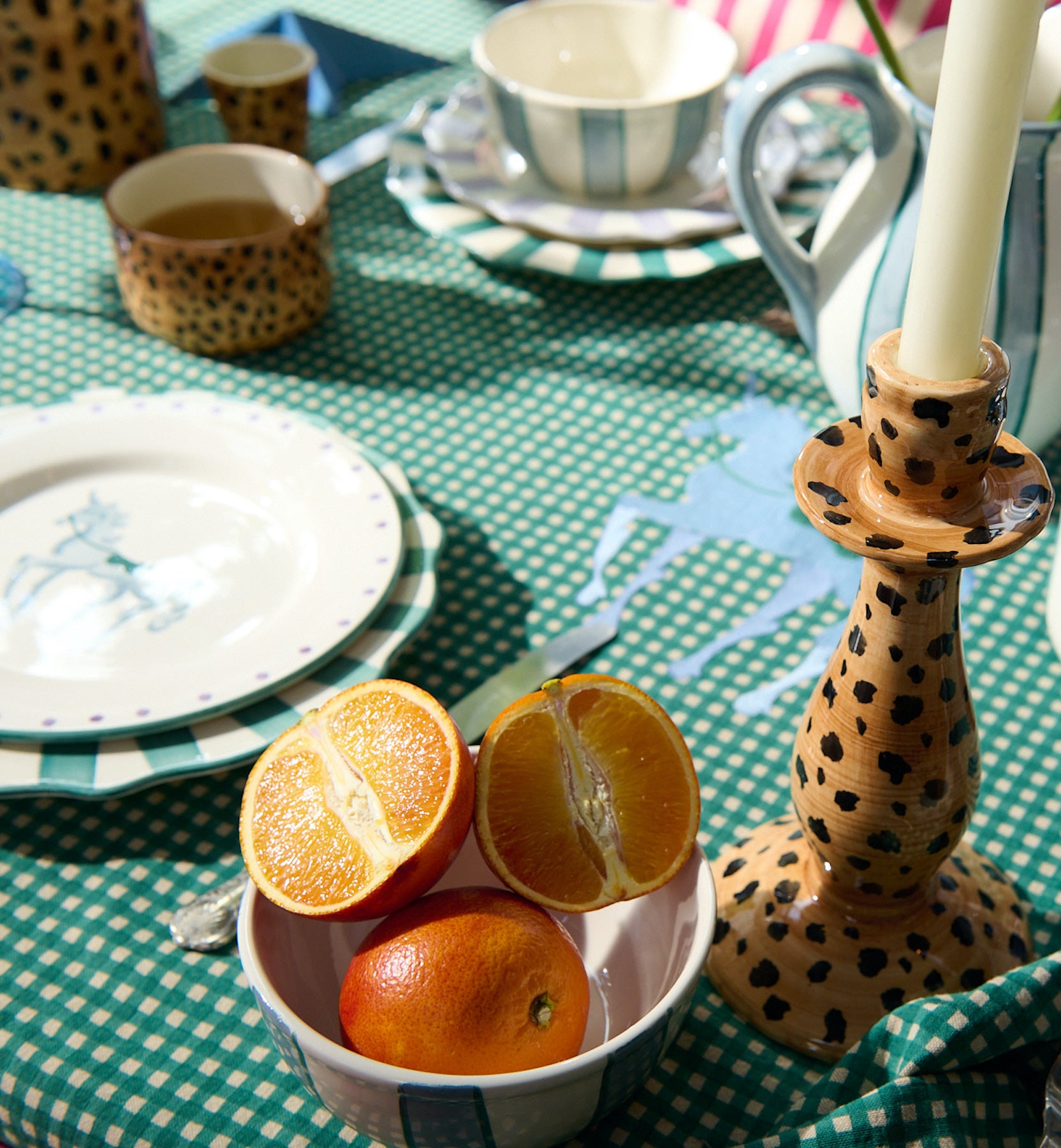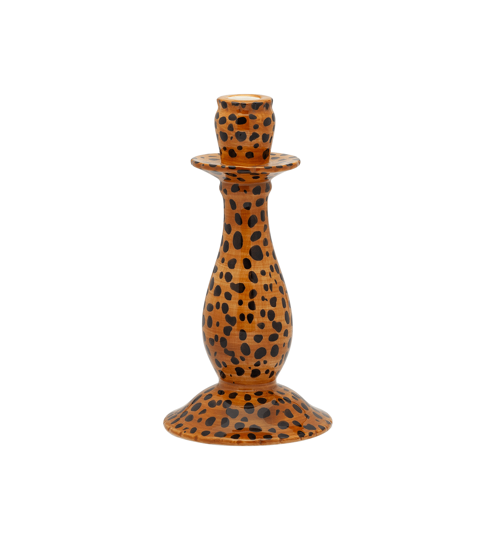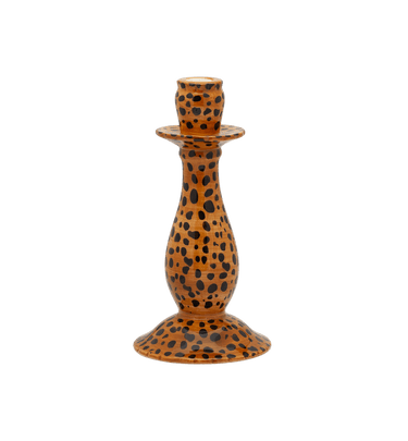 Leopard lysestagen er en unik keramisk lysestage med et eventyrligt leoparddesign, der bringer liv og karakter til dit interiør. Den klassiske form kombineret med det dristige mønster gør, at denne lysestage vil være et statement-stykke på din hylde eller ved middagsbordet.