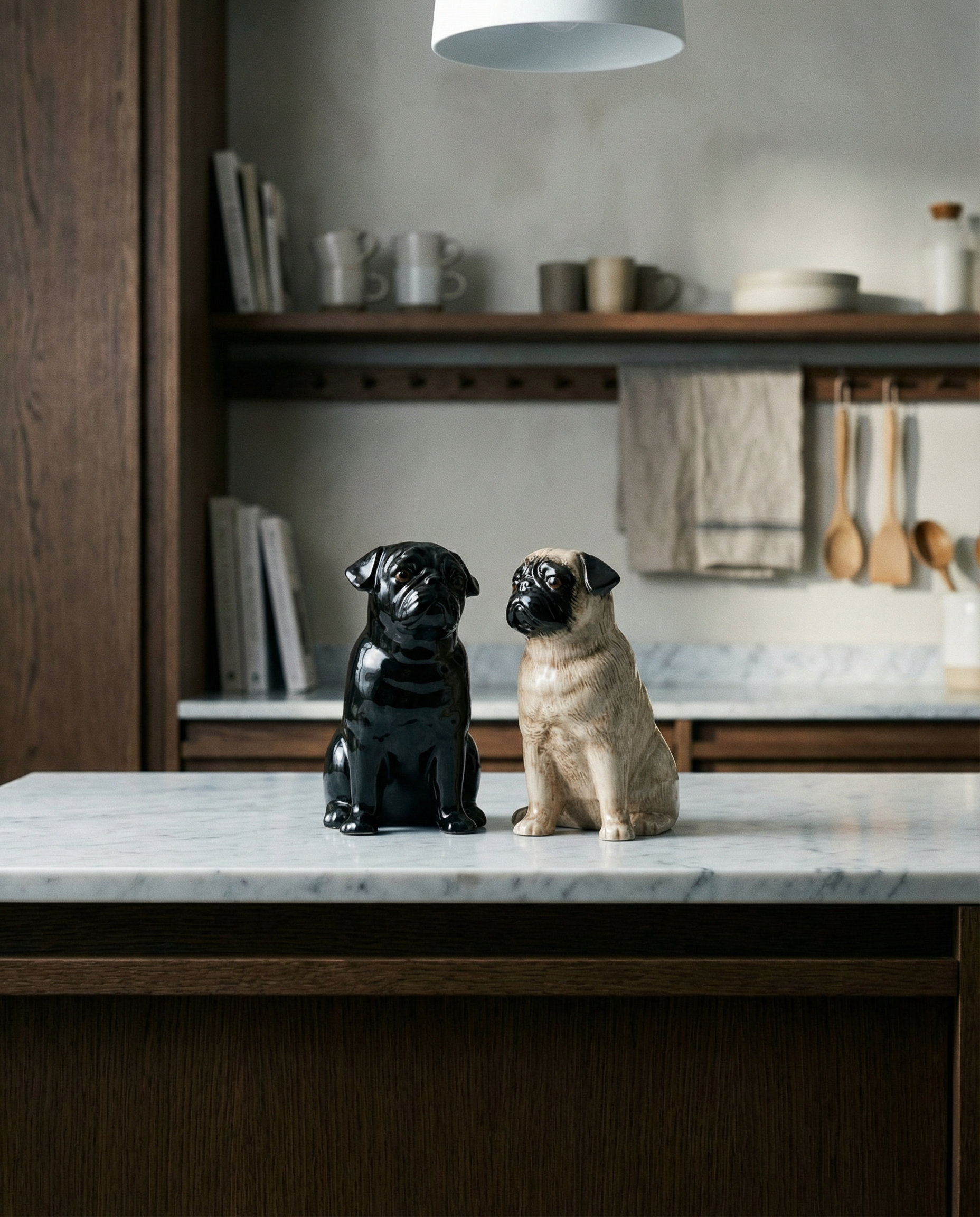 Charmant ensemble sel et poivre en forme de carlin pour une cuisine conviviale