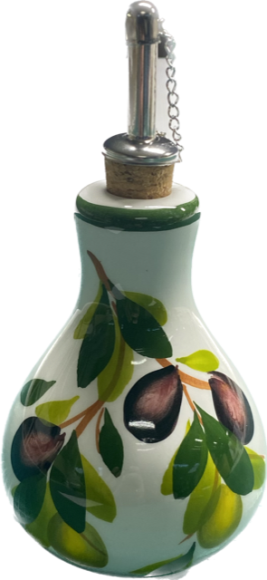 Den lille olie kande fra Caja Company tilføjer et elegant og rustikt præg til dit køkken. Håndmalet med smukke motiver af oliven, er hver kande unik og bringer en ægte italiensk charme ind i dit hjem.