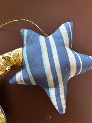 Ornement étoile filante fait main en sari de soie recyclée