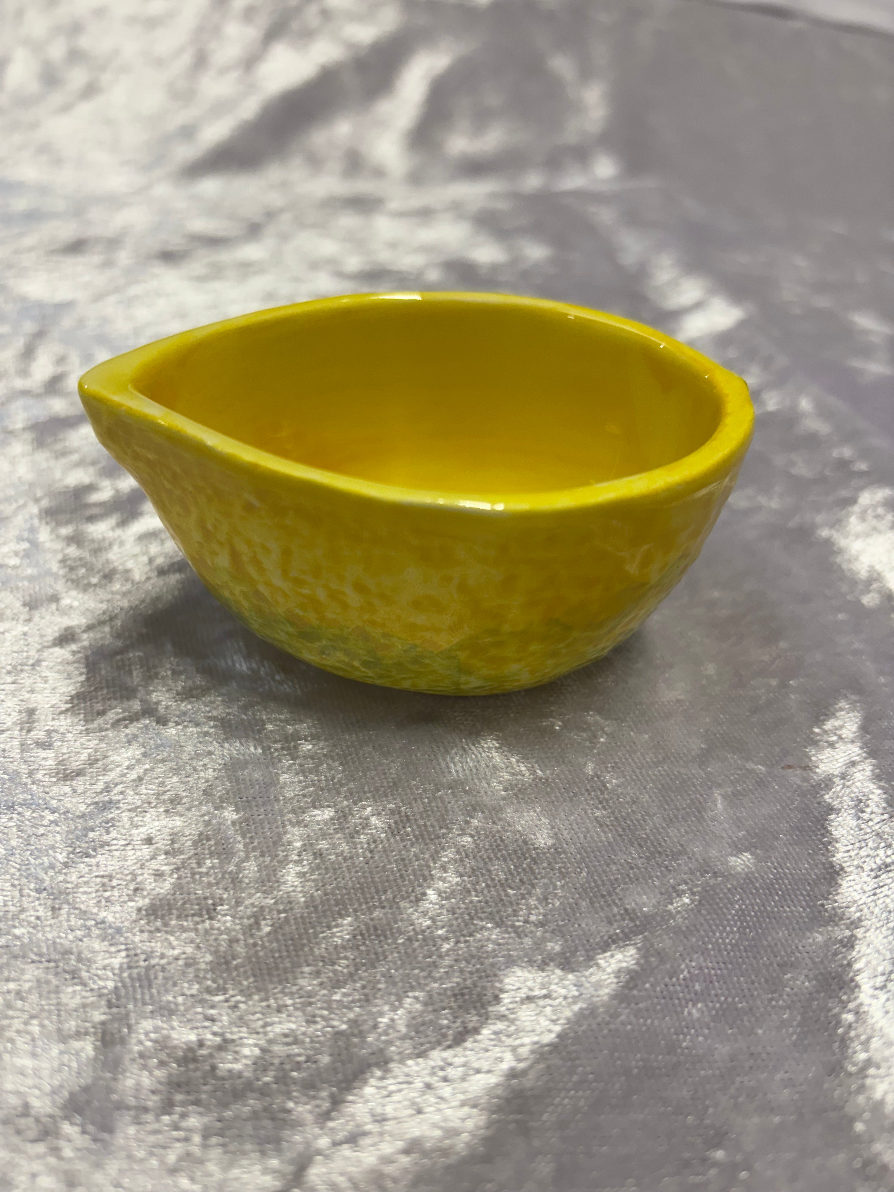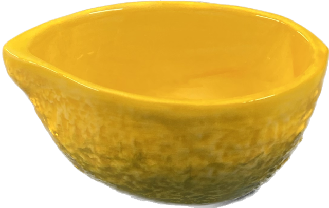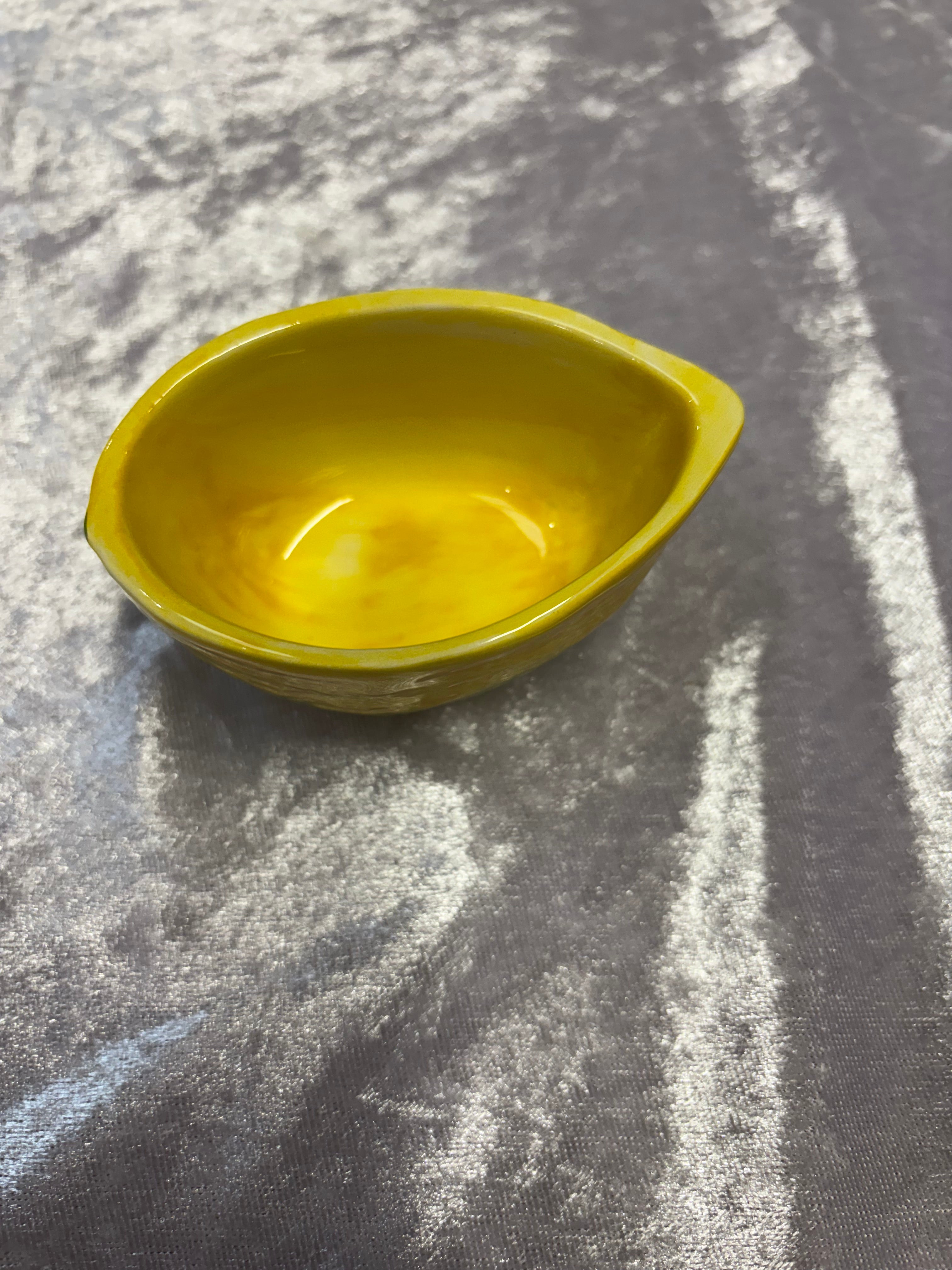Le petit bol citron de la société Caja ajoute une touche d'élégance à votre intérieur. Les céramiques italiennes peintes à la main rendent chaque bol unique et les couleurs peuvent varier, donnant une touche personnelle. Ce bol est parfait pour conserver le sel ou pour ranger vos bijoux préférés dans la salle de bain.