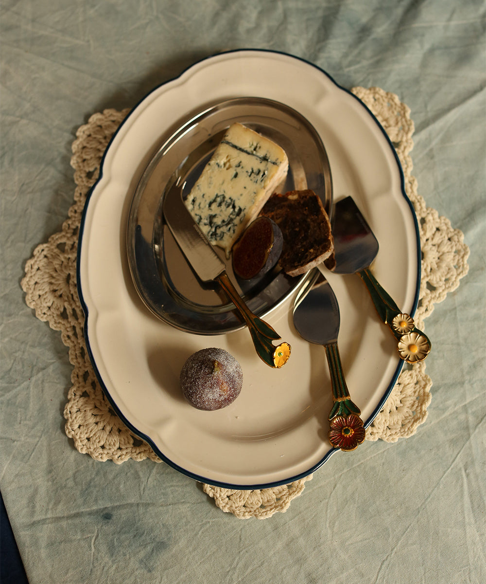 Med Posy osteknivene kan du virkelig sætte prikken over i’et på dit ostebord. Dette sæt med tre elegante knive kombinerer funktionalitet med en smuk dekoration, der vil imponere dine gæster. Hver kniv har et unikt blomsterdesign i messing, hvilket gør dem til små kunstværker i sig selv.