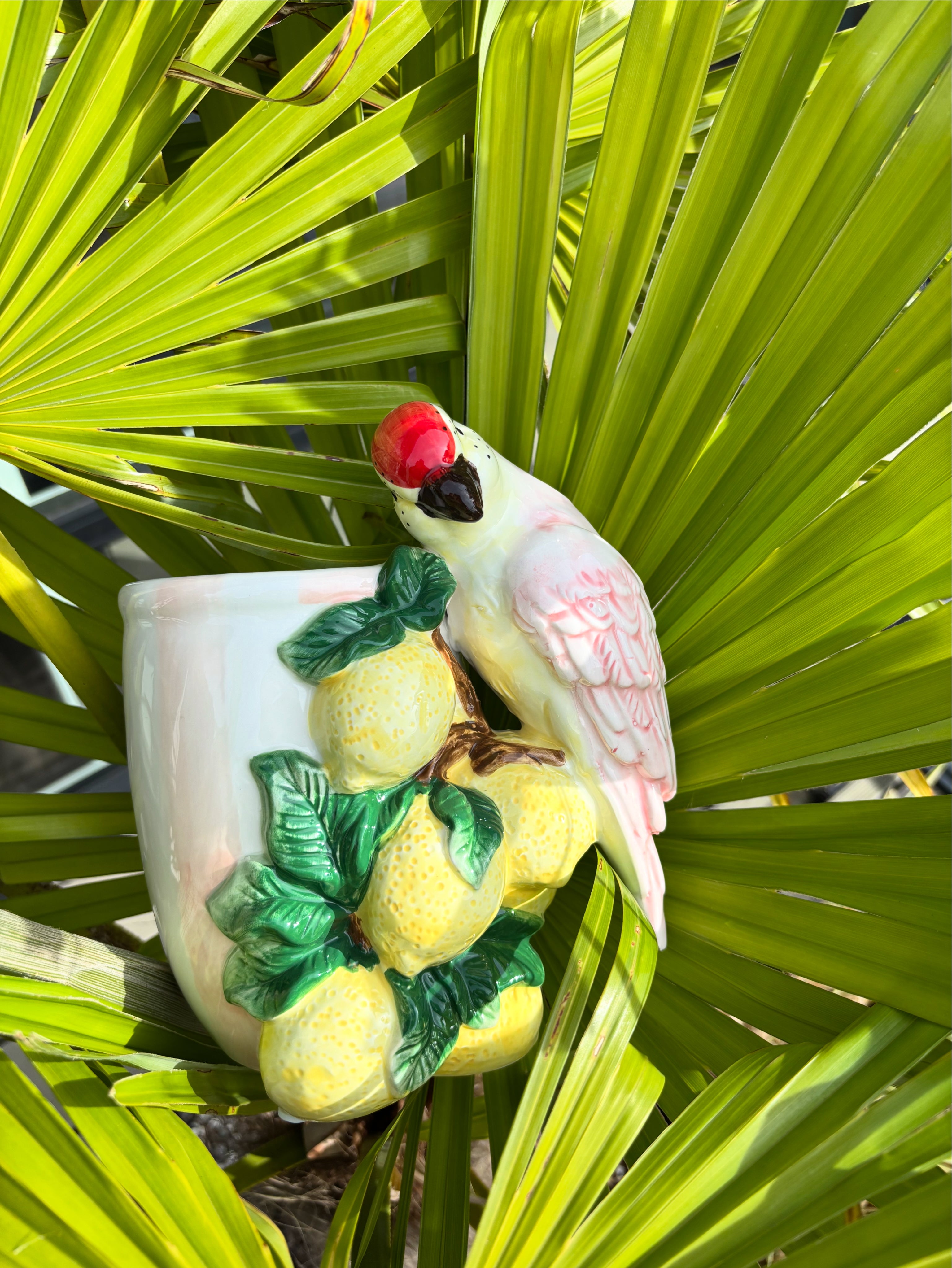 Donnez à vos plantes une maison ludique et colorée avec cette cache de pot rose de Kersten. Il a la forme d'un oiseau et décoré de citrons, créant une décoration unique et ramassage des yeux pour votre chambre.