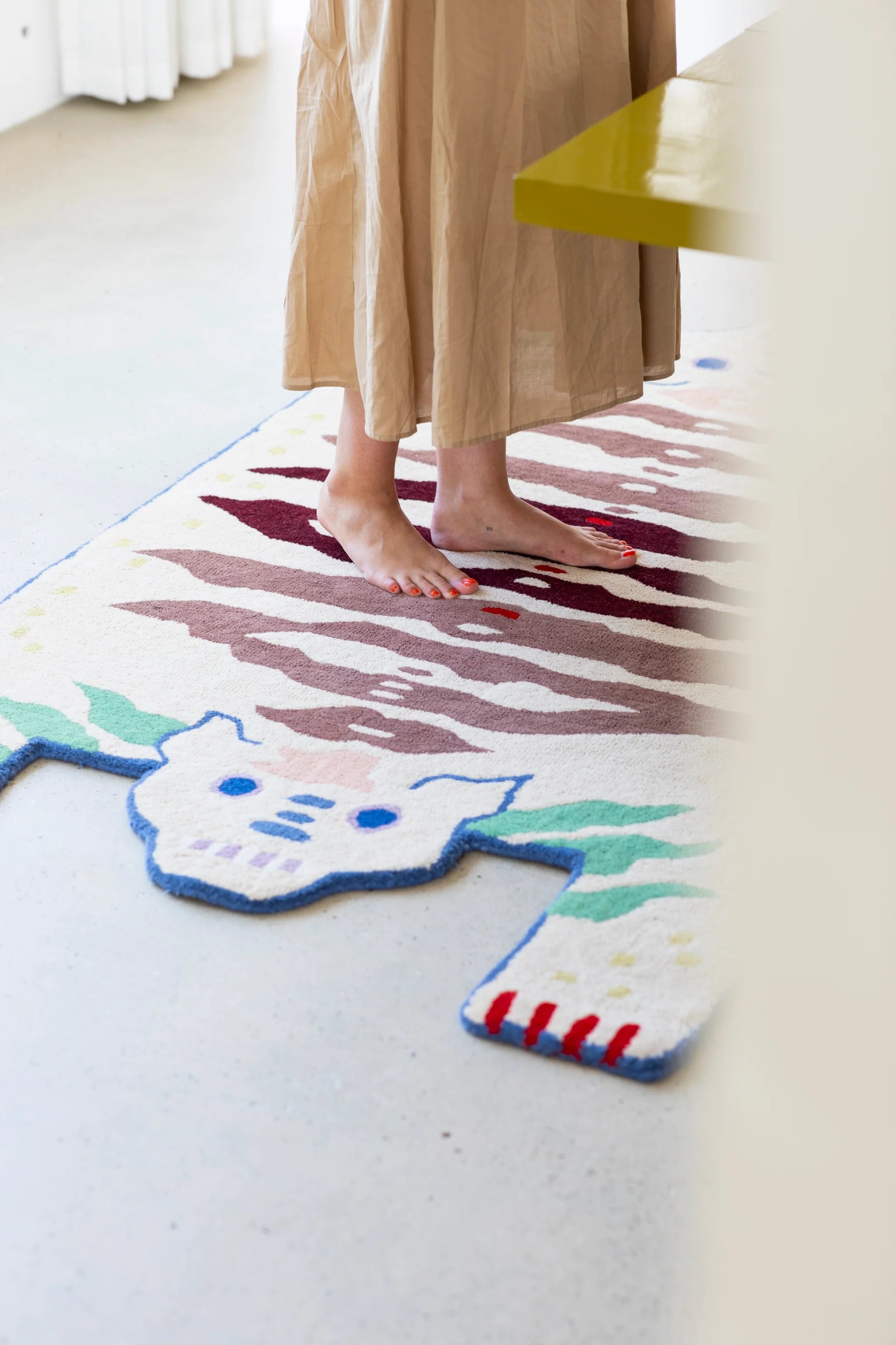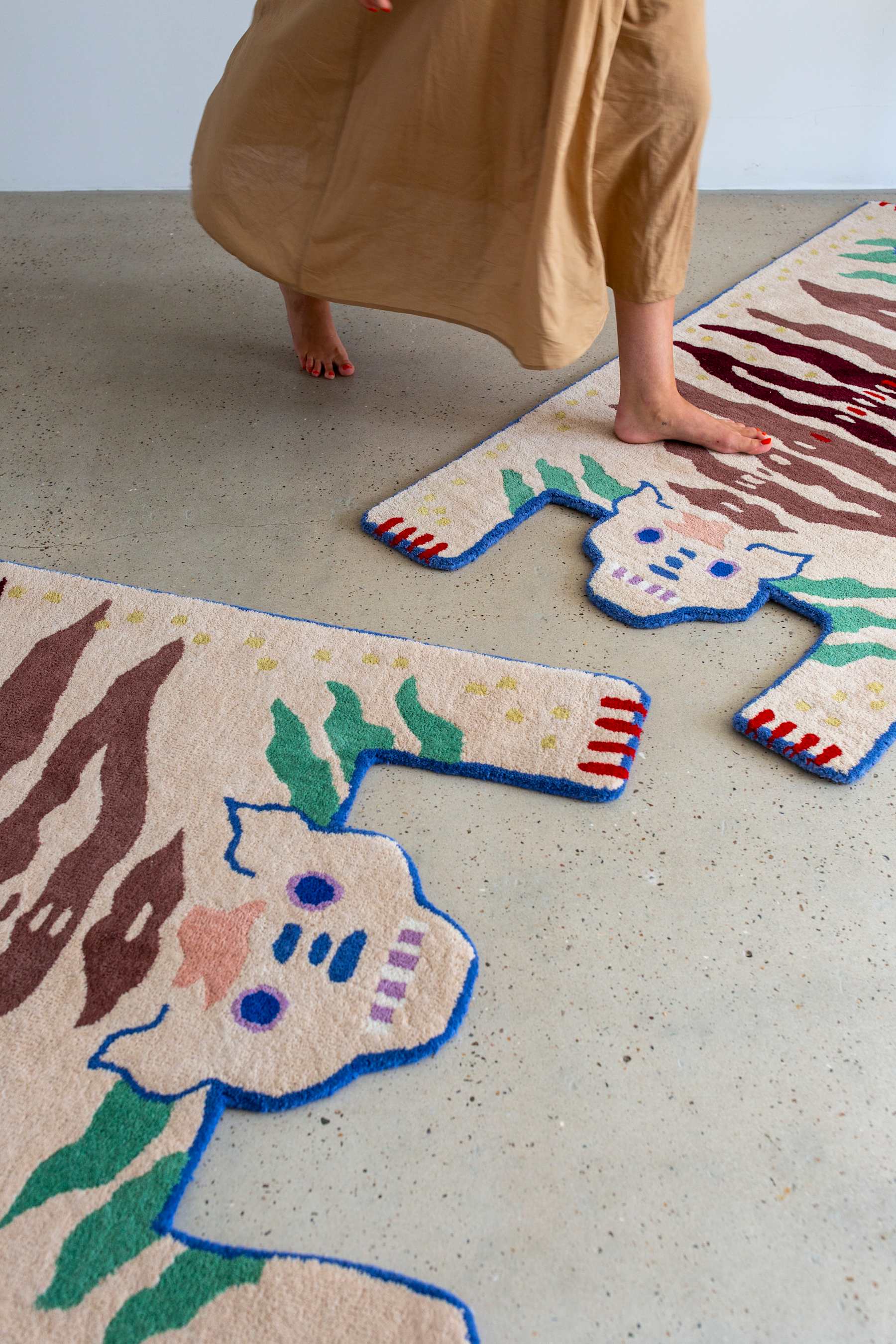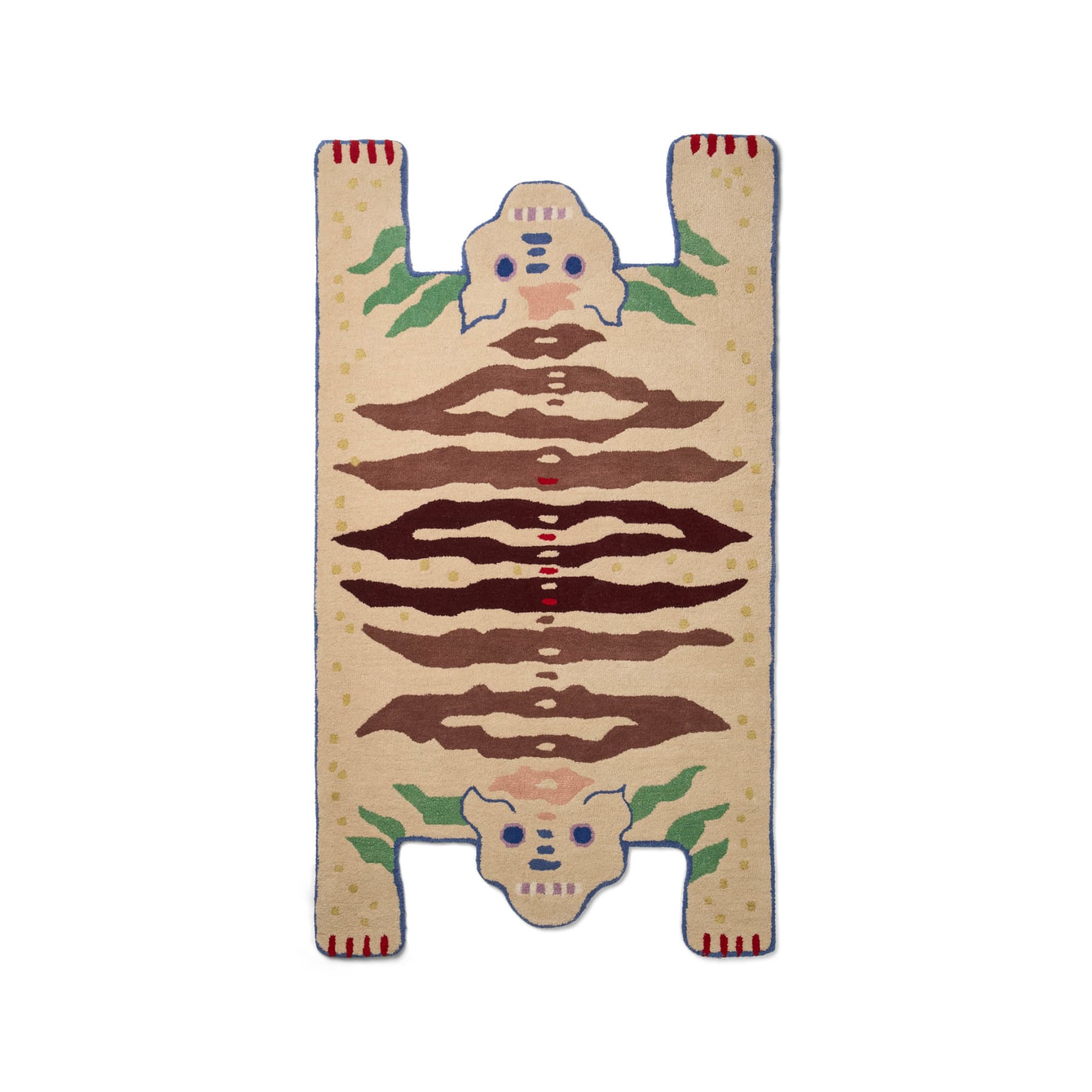 Soulmates Rye est un tapis unique avec une conception majestueuse d'un tigre à double tête. Dans les traditions tibétaines, les peaux de tigre symbolisent la sagesse, et avec deux têtes, le tigre représente à la fois des aspects masculins et féminins. La conception du double tigre s'inspire également des fables et symbolise l'équilibre et l'harmonie dans la narration.