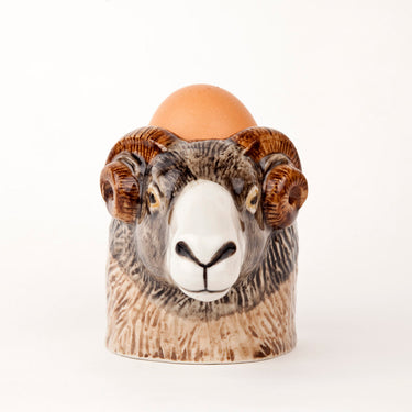 Med sin charmerende fåre-form tilfører dette æggebæger personlighed til dit morgenmåltid. Den stabile konstruktion i stentøj holder dit æg sikkert på plads, mens du nyder din morgenmad. Designet er både funktionelt og dekorativt, hvilket gør æggebægeret til et samtaleemne ved morgenbordet.
