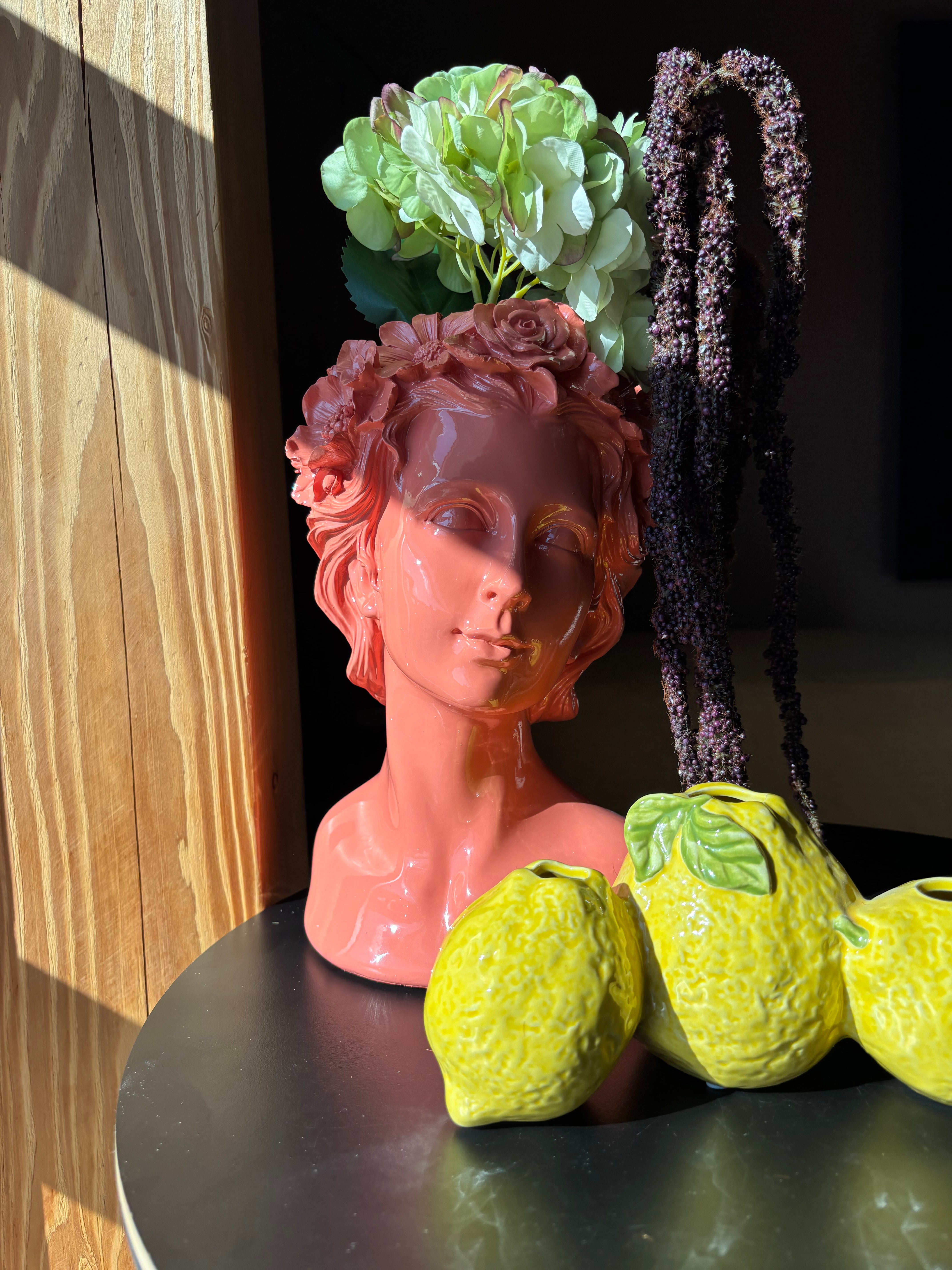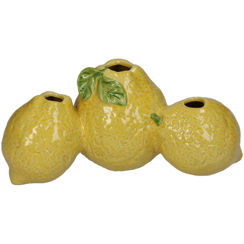 Ce vase citron en céramique de Kersten est un élément coloré dans votre décoration intérieure. Avec sa couleur jaune vif et sa forme caractéristique de citron, le vase crée une expression distincte qui ajoute de la personnalité à n'importe quelle pièce. Le vase a une taille pratique de 21x11x10 cm, ce qui le rend adapté aussi bien aux petits bouquets qu'en tant qu'élément décoratif en lui-même.