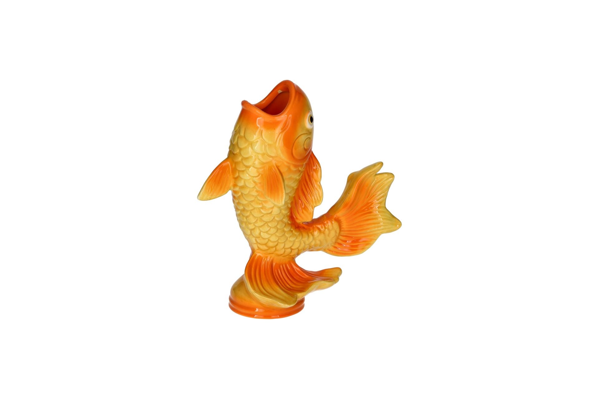 Le thème des poissons prend une toute nouvelle dimension avec ce vase unique en forme de poisson. Sa couleur orange éclatante et son design amusant en font un objet qui attire le regard et qui égayera n'importe quelle pièce. Que vous choisissiez de le placer dans votre salon, sur votre bureau ou sur le rebord de votre fenêtre, ce vase créera une atmosphère chaleureuse.