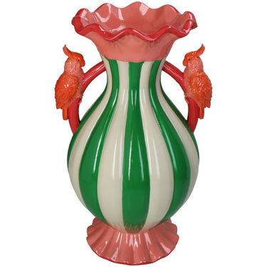 Ajoutez une touche d'élégance ludique à votre décor avec ce vase coloré et unique. Le vase rayé avec des perroquets en rose et en vert de Kersten est parfait pour créer une atmosphère joyeuse et animée dans n'importe quelle pièce.
